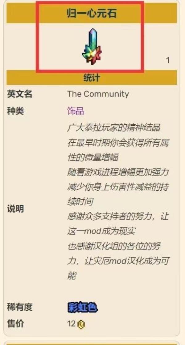 泰拉瑞亚灾厄归一心元石怎么获得?归一心元石是一个困难模式的饰品,这个饰品会玩家增加大量的属性加成,而且随着游戏的进程,增加的属性会越来越高,而且会减少受到持续伤害性减益的持续时间,玩家想要获得它就需要在困难模式击杀阿娜希塔和利维坦,有10%几率掉落,下面就是归一心元石的详细介绍。
