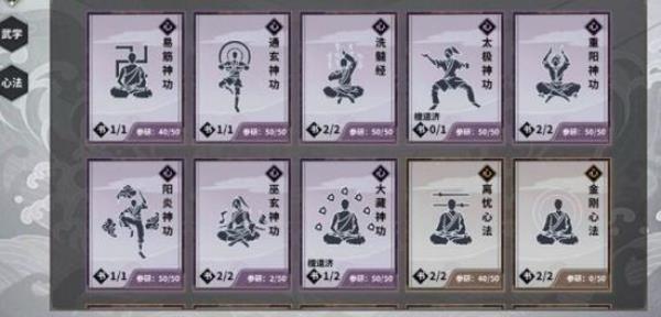首先列出需要参研的内:洗髓经,大藏神功,金刚心法(人称小大藏),阳炎神功,刺杀要术(小阳炎)
