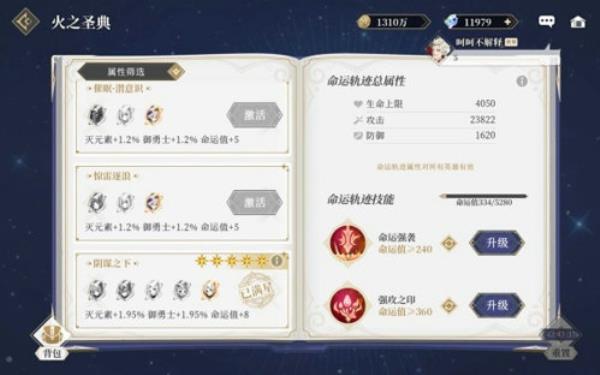 2.以上分别对应三个法典的高级属性,加的战力最多,提升最大,必须优先点,即伤加,减伤,命中,闪避,暴击与抗爆,点完后,从右边红色法典开始加起,筛选职业属性——御四灭四,提升战力值排第二位