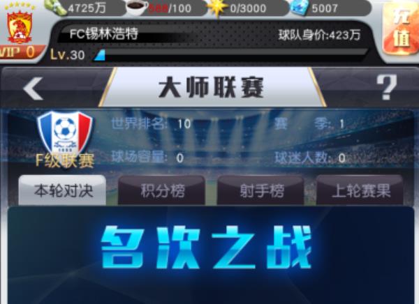 1:大师联赛一共有11个等级,玩家刚进去的时候需要从F级联赛开始打