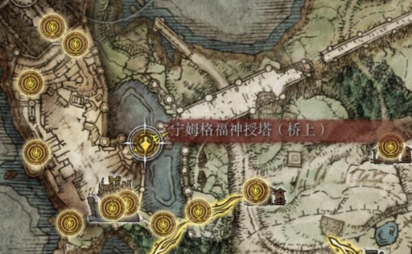 首先玩家需要先到达城内宁姆格福神授塔这个赐福,该赐福位于城门靠右侧,由于正面突破会有大量弩兵和一只精英怪,因此推荐玩家从打完葛瑞克的赐福处反向向下推图。