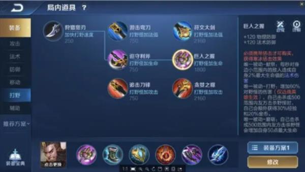 极寒风暴和不死鸟之眼为核心装备,生命值、物理防御以及法术防御兼备。暗影战斧、极寒风暴和名刀·司命恰好可以提供40%冷却缩减,名刀·司命进入cd时也可将其替换为血魔之怒。携带召唤师技能惩击的程咬金可选择打野刀巨人之握,携带其它召唤师技能可将巨人之握替换为其它防御装备,例如不祥征兆、反伤刺甲等。