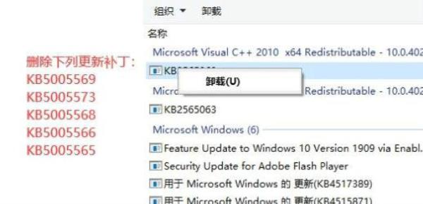 4、然后点击左上角的“查看已安装的更新”。5、最后卸载图示的一系列更新补丁就可以了。
