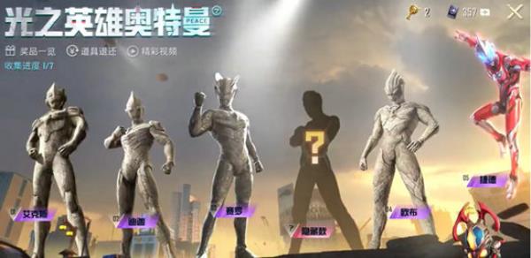 每个光柱点击后都是不同的角色,玩家可自行选择自己喜欢的奥特曼。