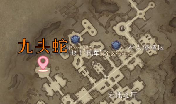 1、多头蛇的位置在【库勒的藏书馆】中,击杀之后有概率掉落传奇装备。