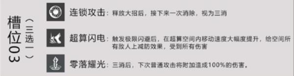 技能推荐:建议选择第一个共鸣技能,因为库洛姆·弧光的大招输出还是非常高的,可以通过大招打出可观的伤害,通过武器技能让库洛姆在三消后提高爆发伤害的上限。