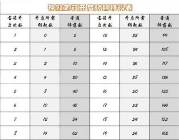 注意神殿宝箱开启次数不同,所需要的钥匙数量也不同,奖励也会不同,具体需要的钥匙数量可以参考下表: