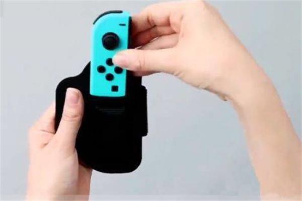 2、将左边的Joy-Con好好插进腿部固定带深处,然后坐在椅子上,紧跟着就要在腿部安装Joy-Con。