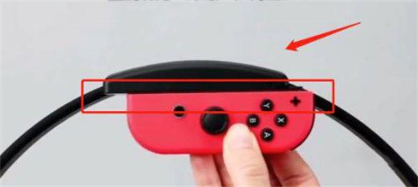 4、然后将右边的Joy-Con划入Ring-Con,直到听见”咔嚓“的声音为止。Ring-Con安装完成。