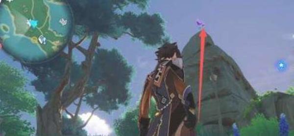 2、找到岩石边上,发现最上方有一个雷神瞳。
