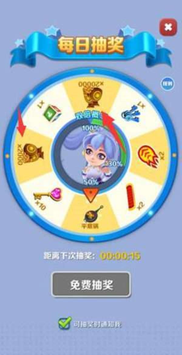 2、每天都可以免费抽转盘,而且抽中金币的概率很高