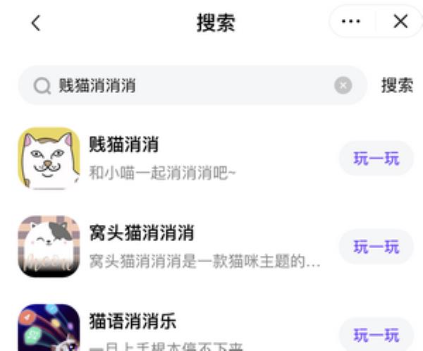 4、进入到抖音小游戏之后,找到贱猫消消可以打开,或者搜索打开也可以