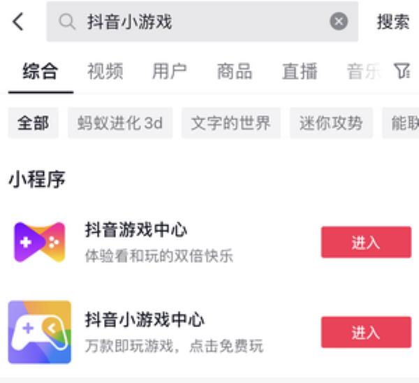 2、进入到抖音app后,就可以在搜索框中搜索“抖音小游戏”