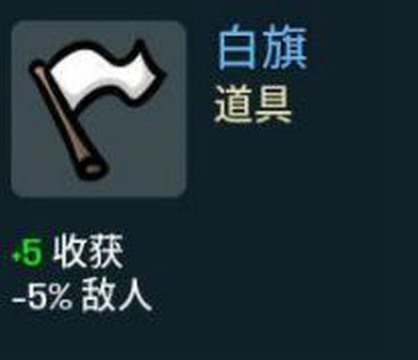 蝙蝠是 生命盗窃,-2收获。由于这两个道具的存在,需要走吸血流派,在人才中选择吸血收入很低。这两个白道具价格低廉,一个是=二级天赋(一级天赋) 1吸血,2级天赋,即蓝色 2吸血)。需要注意的是,需要走吸血流派,可以靠这只蝴蝶和蝙蝠来支撑吸血。除非跳出一个三级吸血天赋,否则不需要在天赋中指出,其他都是白色的,所以考虑拿。2.【白旗】加减敌人