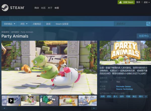 1、动物派对在steam的名字叫做party animals,玩家们可以直接通过steam商店找到这款游戏。