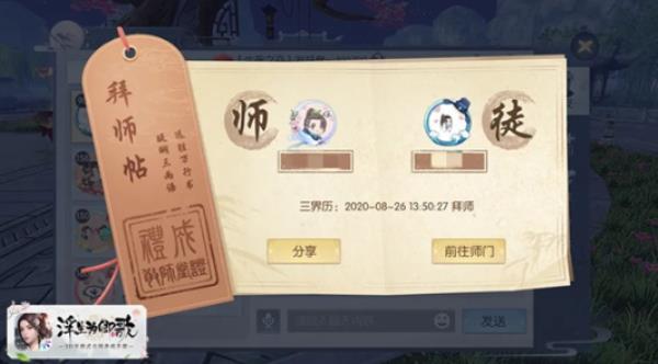 若在修学录中完成了五个学业目标,门下弟子即可申请出师,待师傅同意并选择出师礼后,即可出师。
