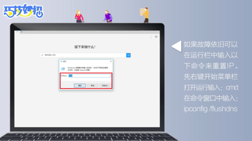 2:如果故障依旧,可以在运行栏中输入cmd,在cmd窗口输入ipconfig/flushdns