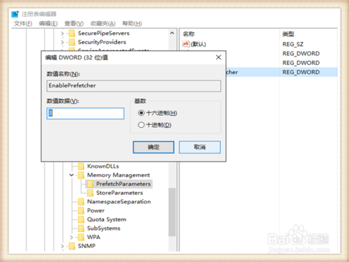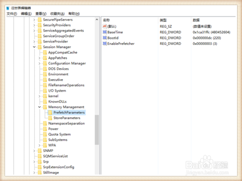 7:这时看右侧的键值,第三行为enableprefetcher项,一般这里的值为3(处于默认开启状态),如果在之前的服务中禁用,这里将会出现0,我们这里要优化的就是另两个取值1或2。