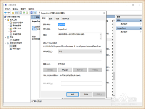 2:选择服务选项,然后在右侧的服务列表中先按序排列,然后找到s开头的服务,选中super fetch服务,单击鼠标右键,在弹出菜单中选择停止服务,就关闭了此项进程。