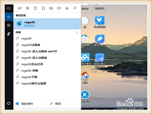 4:可以继续优化super fetch的功能,不过没有图形化界面了,在windows左下角的搜索窗口中输入regedit命令,在上端的最佳匹配中选择注册表修改器命令进入到下一步。