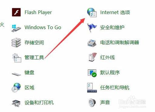 3:这时就会打开windows7的所有控制面板项窗口,点击窗口中的“internet选项”图标。