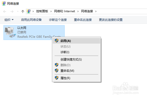 5:第五步,再次用鼠标右键点击该网络图标,然后在弹框中点击启用,如下图所示: