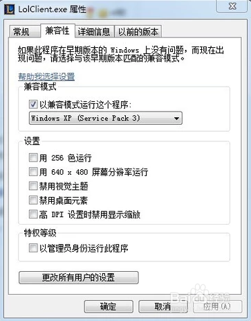 5:安装深度技术win7或者win8+深度技术win7双系统,鼠标右键单击LoL快捷方式的“属性”选项,以兼容模式运行LoL,深度技术win7只需要切换进入深度技术win7、win8系统玩LoL就可以了。