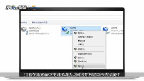 4:在新界面中找到移动热点网络并右键单击选择属性。
