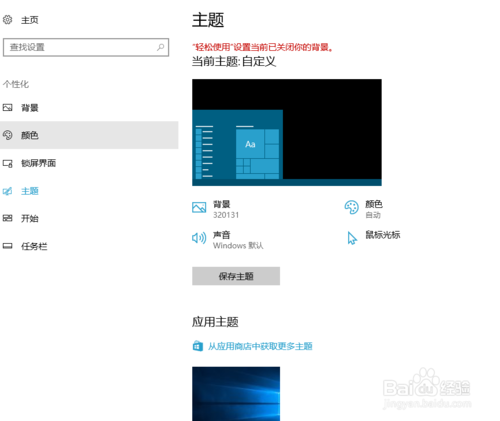 3:点击主题看看能通过主题来变更不,发现还是显示轻松使用这个提示