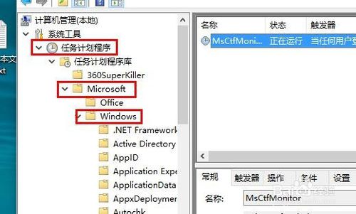 3:在计算机管理窗口里面点击左侧的【任务计划程序库】,找到【Microsoft】,