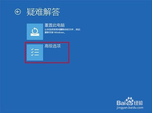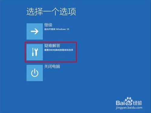 3:重启后,进入第一个选择画面,点击“疑难解答”
