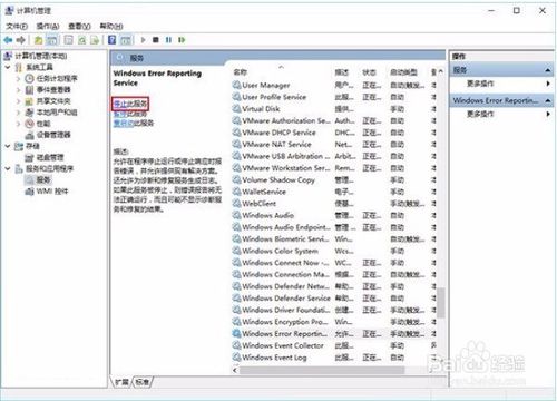 11:再找到 windows Error Reporting service,单击后同样在左侧点击“停止此服务”
