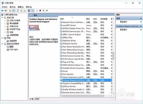 10:在中间找到 Problem Reports and solutions Control Panel support 服务,单击后在左侧点击“停止此服务”