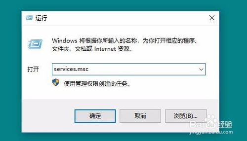 2:在打开的运行窗口中,输入命令services.msc,然后点击确定按钮。