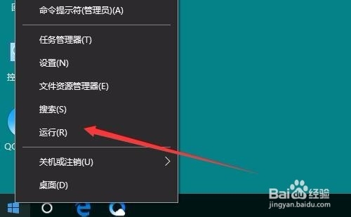 1:在windows7系统桌面,右键点击桌面左下角的开始按钮,在弹出菜单中选择“运行”菜单项