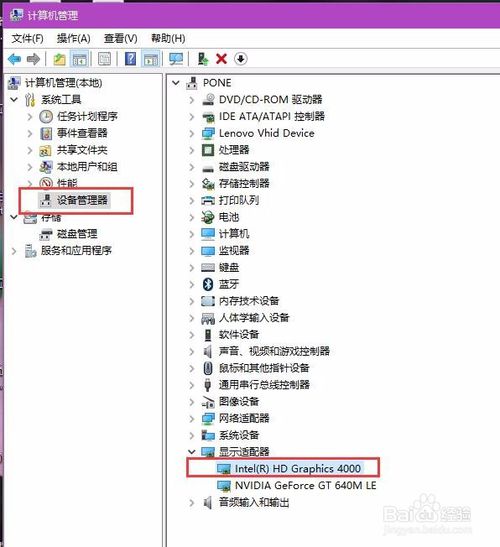 2:打开计算机中的管理应用界面之后,双击左侧的“设备管理器”菜单选项,然后找到“显示适配器”菜单按钮,找到核心显卡设备器并双击打开。