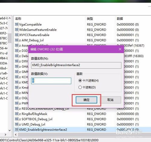 4:接下来,我们将该新建的子项命名为“KMd_EnableBrightnessinterface2”,然后双击打开该子项值,将该子项值修改为“0”。