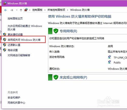 2:如果防火墙软件禁止windows系统中的更新程序联网的话,那么就很可能产生一些错误信息提示。以windows防火墙为例,打开windows系统中的防火墙应用之后,点击左侧“打开或者关闭windows防火墙”按钮。