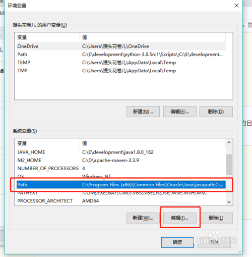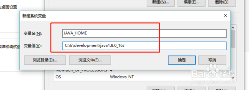 变量值: C:\E\development\java1.8.0_162(这个路径就是你的java安装的目录)