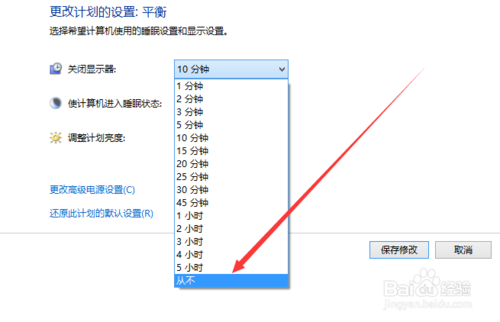6:选好之后,点击页面下方的保存修改,计算机就不再自动关闭屏幕或者休眠了。