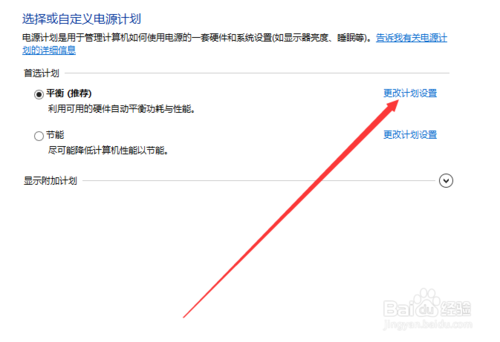 4:进入更改页,在所选的电源计划后面点击更改计划设置。