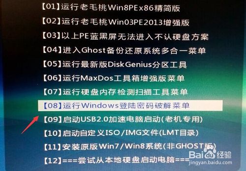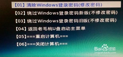 2:进入U盘启动的界面,像现在网上的PE启动盘都有带有一个windows登陆密码确解菜单这一项。选择再回车进入,然后选择01清除windows 登陆密码。