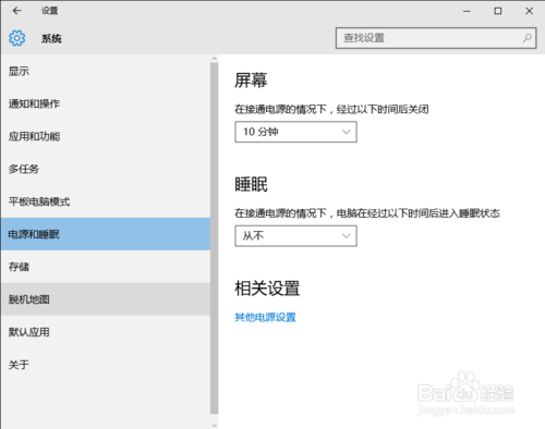 5:哪下图所示,在高级选项中,找到<睡眠>大类,确保睡眠处于从不状态,混合睡眠处于关闭