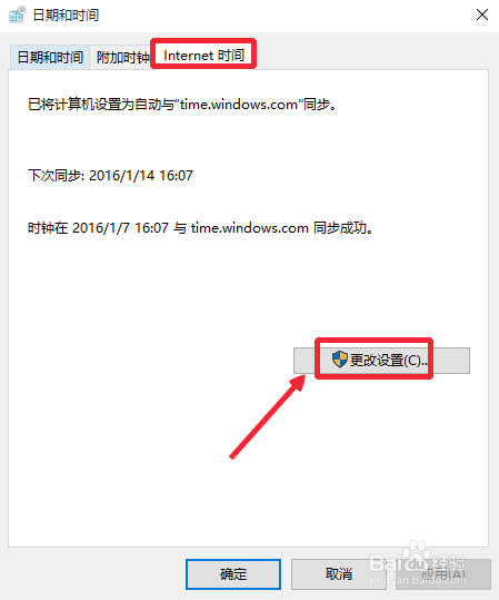 3:日期和时间中选择internet时间里面的更改设置按钮。