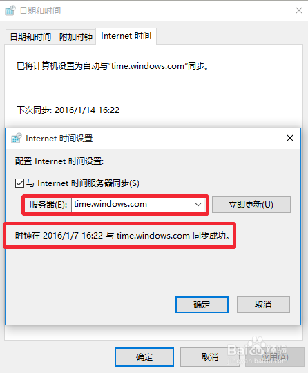 6:显示与时间服务器同步成功,这时候电脑时间应该是比较准确的时间了。