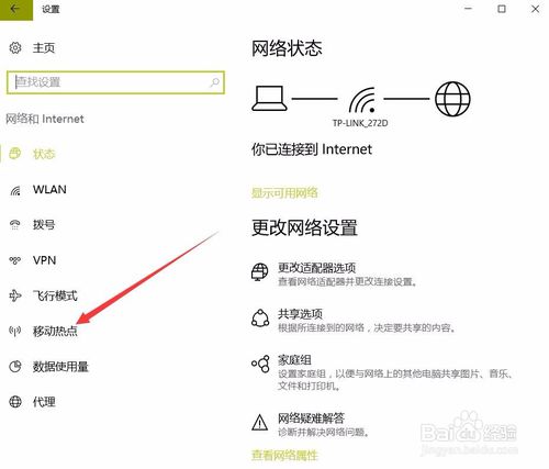 3:此时我们可以看到在左侧会有一个“移动热点”选项卡,单击该选项卡。