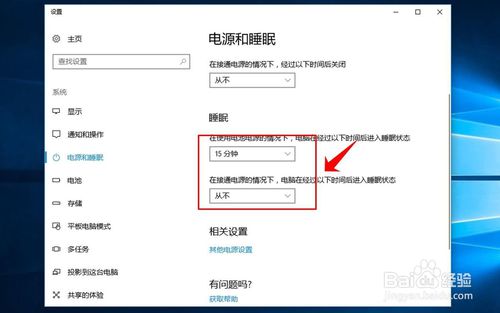 7:根据上述方法,在图示区域内完成电脑睡眠时间的设置。