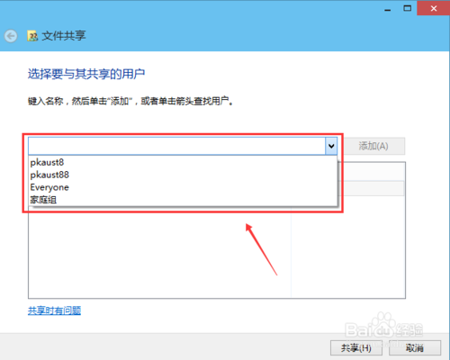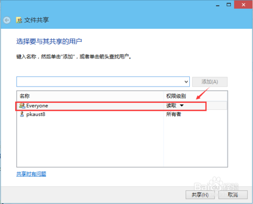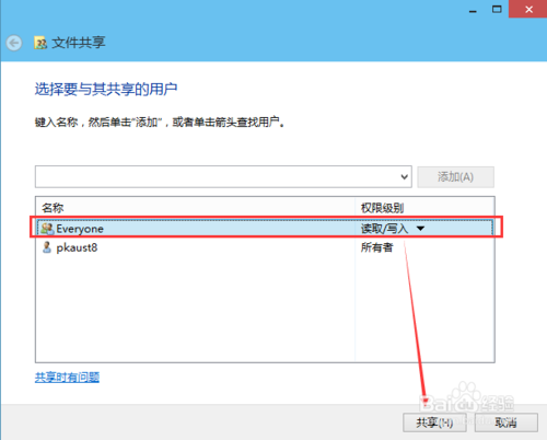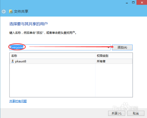 4:选择要共享的用户,点击添加,如下图所示。