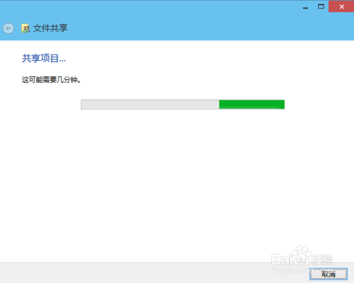 8:点击后,系统设置共享文件夹,要等待几分钟,如下图所示。