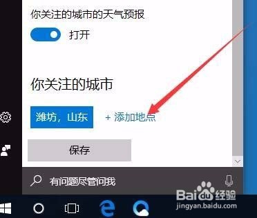 5:接下来我们设置要关注的城市,点击下面的“添加地点”快捷链接,如下图所示: